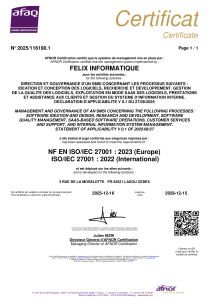 Cette certification s’inscrit dans une démarche globale de qualité, déjà reconnue par notre certification ISO 9001.